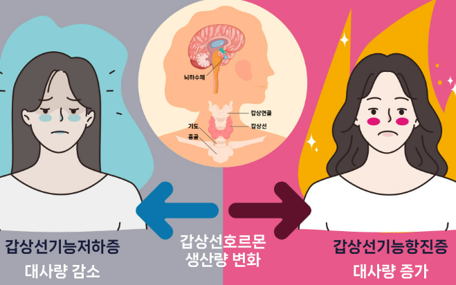 갑상선 기능 저하증과 항진증의 차이는 무엇인가요?